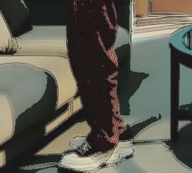 ファッション関係者の間でも高い人気を誇るアレキサンダーマックイーンのスニーカー。ジミンはキャンバス地のチャンキーソールをチョイス。