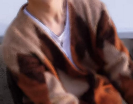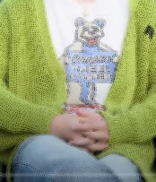 18awのneedlesのモヘアカーディガン。こちらでは同ブランドの同型の別バージョンも着用。